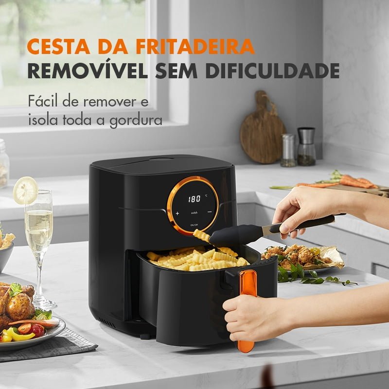 Faça refeições incríveis sem a necessidade de óleo – tenha uma vida mais saudável e surpreenda sua família e amigos com um resultado delicioso! O cesto antiaderente e a tecnologia avançada de aquecimento garantem não só sabor, mas aquele douradinho lindo que deixa qualquer um com água na boca!