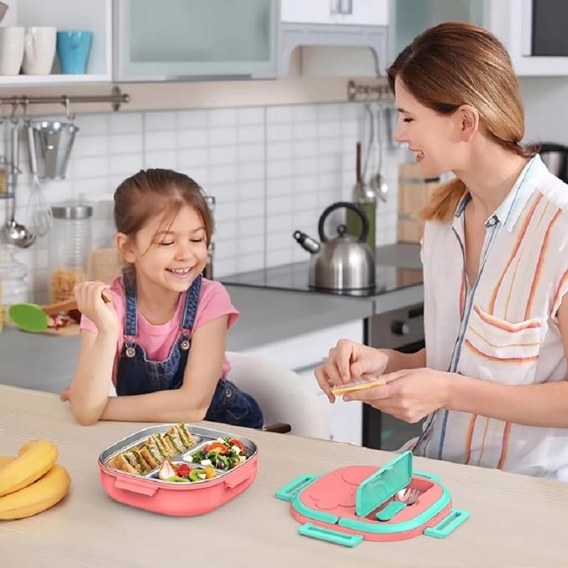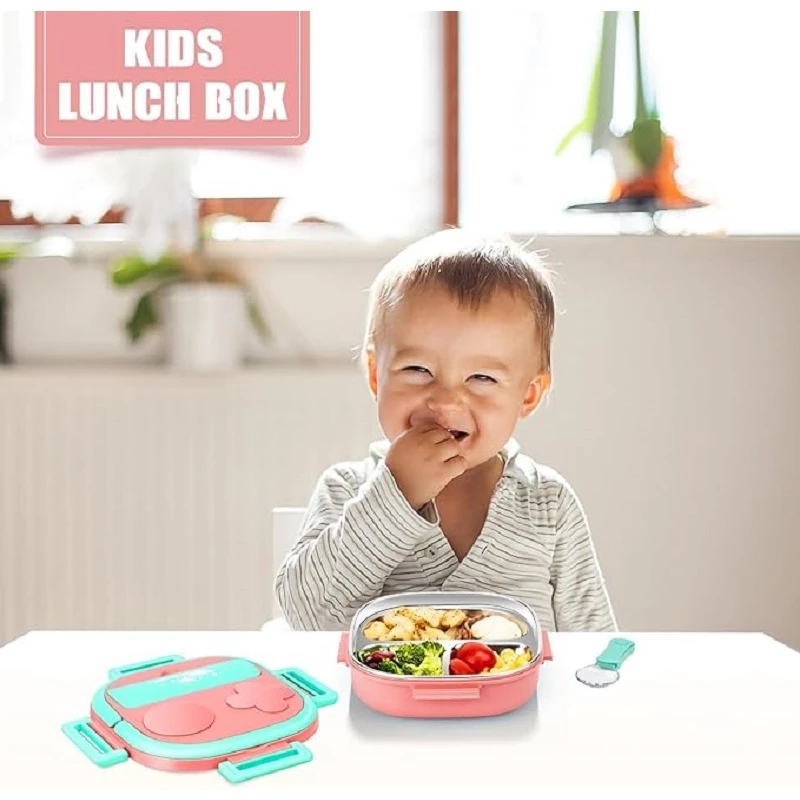 ESPECIFICAÇÃO: Material da linha : Aço inoxidável e plástico de qualidade alimentar PP Característica: Ecológico, com colheres, à prova de vazamentos, isolamento térmico Forma: Quadrada Cor: azul/rosa Tamanho Aprox.: 17x17x6cm Capacidade: 550 ml