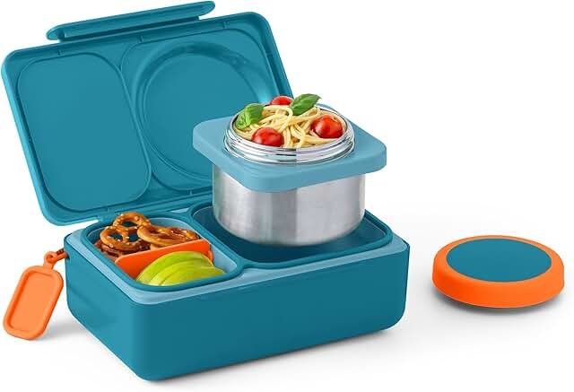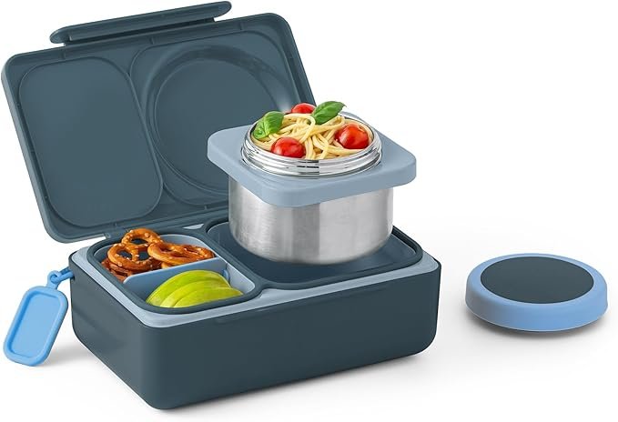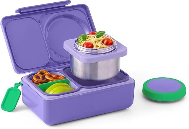De um lado está o frasco removível, à prova de vazamentos, isolado a vácuo de aço inoxidável com uma generosa capacidade de 350mL (40% maior que o OmieBox) que manterá alimentos como macarrão, sopa e macarrão aquecidos por até seis horas. E, por outro lado, um compartimento para lanches com uma divisória removível que fica em cima de uma bolsa de gelo fina que manterá alimentos como frutas, iogurte e charcutaria frescos e frescos. Especialmente projetada para aqueles que preferem refeições quentes para o almoço, esta é a caixa bento mais versátil, tudo-em-um, quente e fria para apetites maiores.