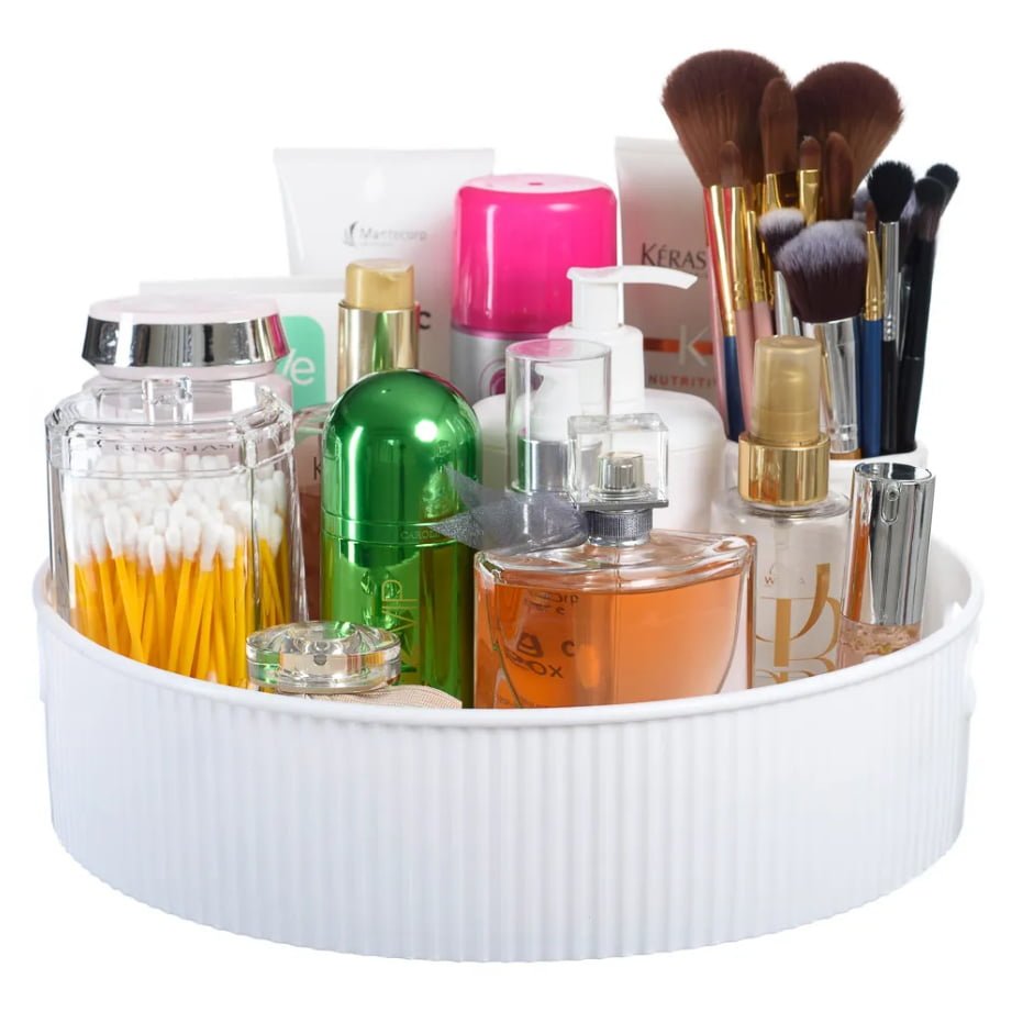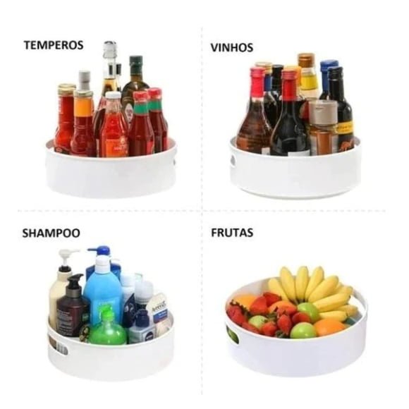 Com design bonito e moderno, além de praticidade, você decora seu espaço organizando produtos dentro do armário, geladeira, cozinha, banheiro, quarto, penteadeira, bancada, prateleira giratória, 360graus.